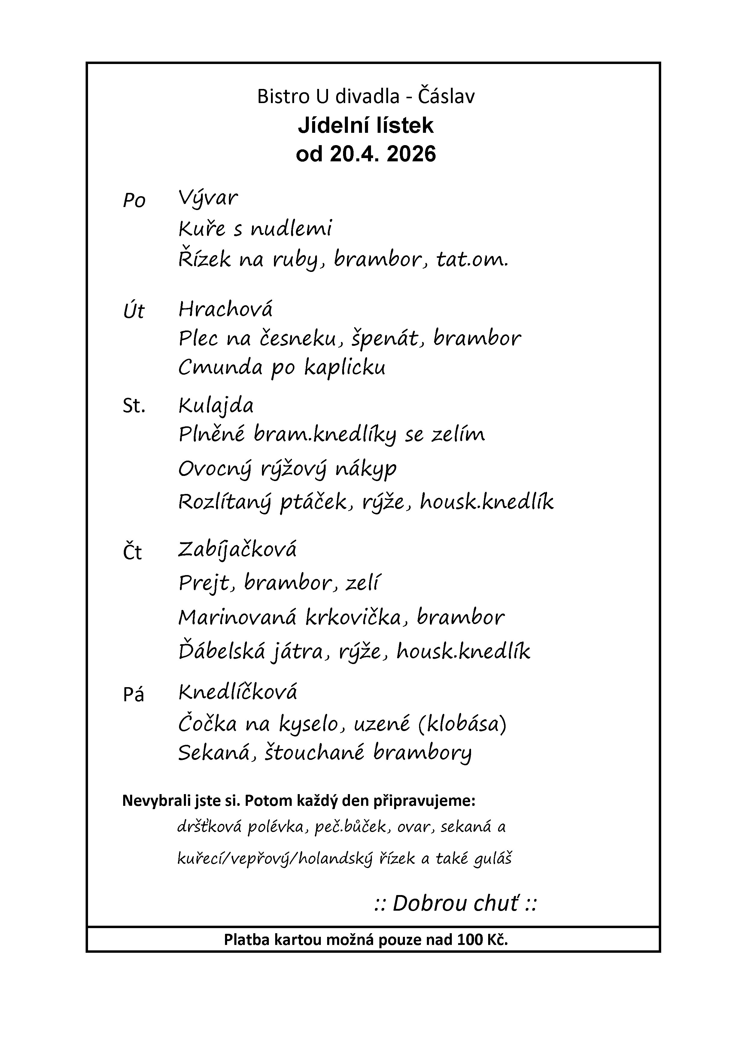 Připraven pravidelně každý den beze změny.